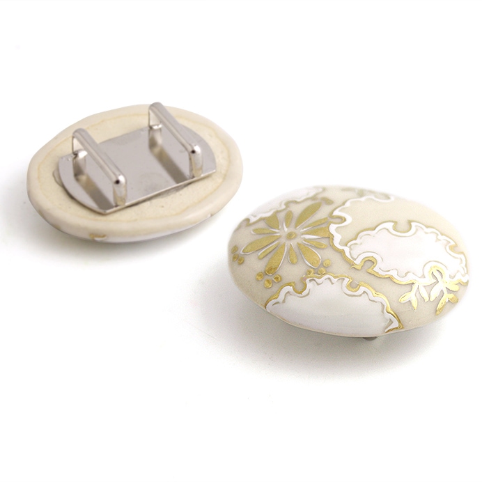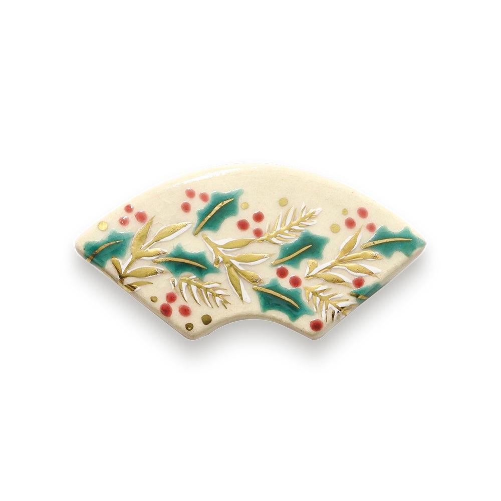 京焼 陶器作家 千世(chiyo_ni)さんに作っていただいた、井澤屋オリジナルの京焼の帯留めです。華やかなお色の釉薬と金彩をふんだんに使い、ころんとした形も愛らしい井澤屋好みの帯留めとなりました。お着物の可愛らしいアクセントとして、ツリーやヒイラギなどの季節の柄をお楽しみくださいませ。