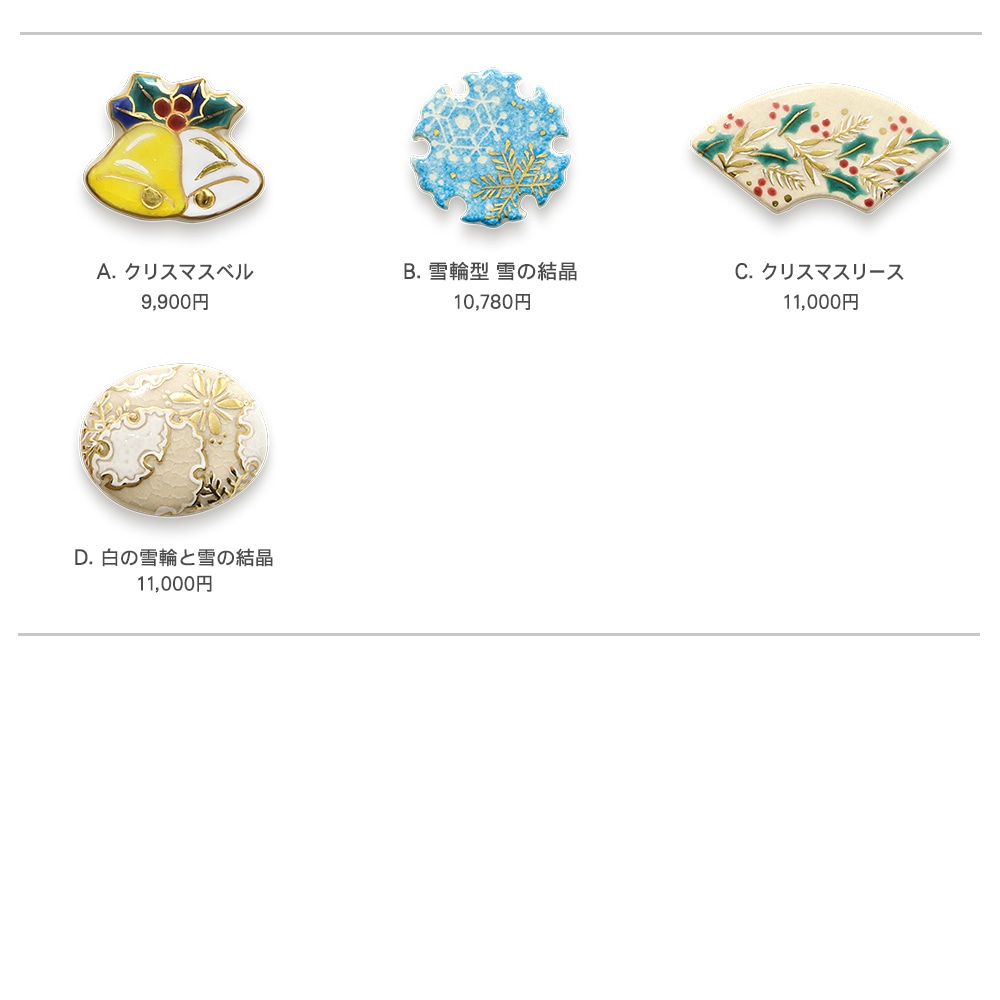 井澤屋オリジナル 京焼 クリスマスと冬の帯留め