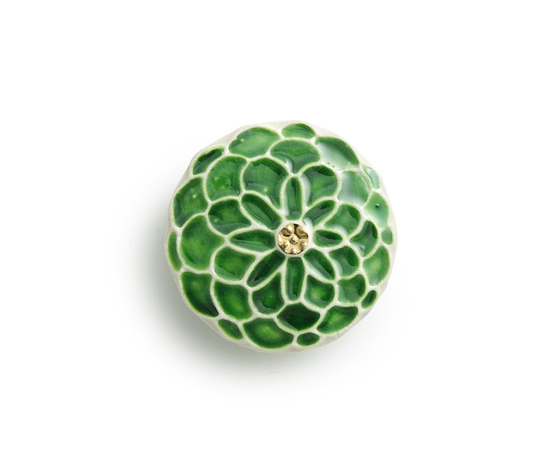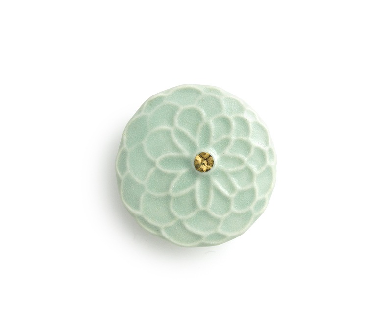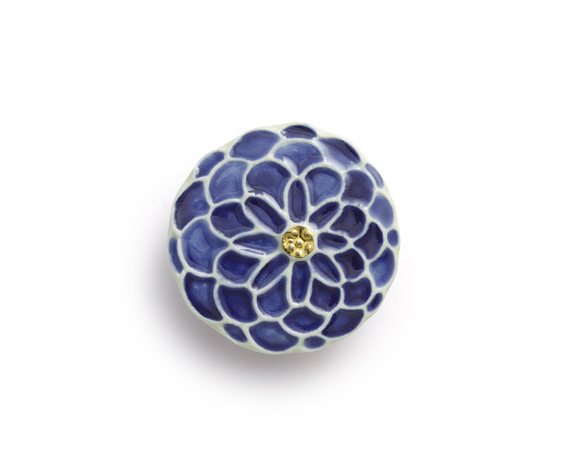 菊をイメージした丸いフォルムの陶器製の帯留めです。