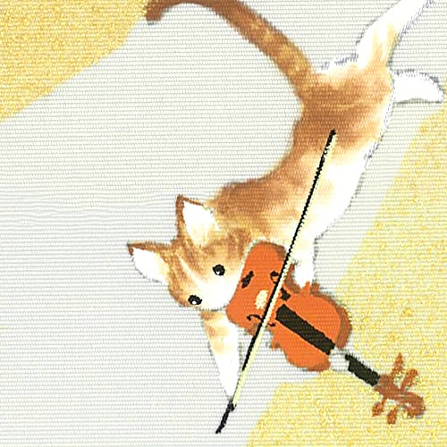 新塩瀬帯「ねこの音楽隊」グレー地