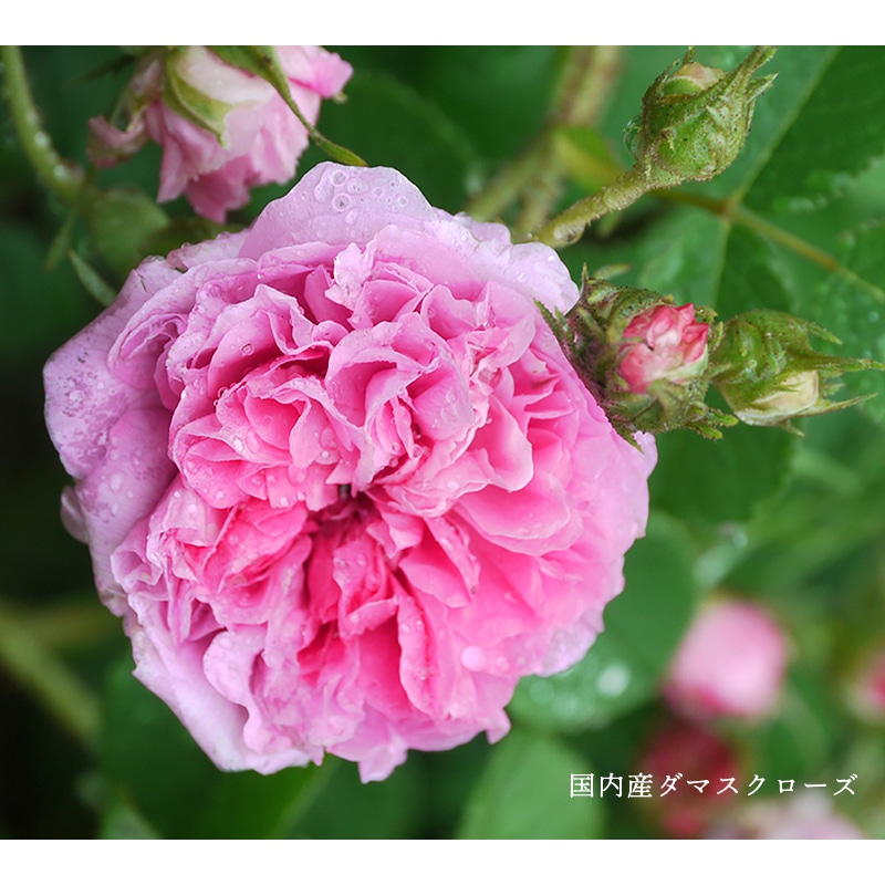 希少で贅沢な国産オーガニックダマスクローズ水(有機認証取得)を贅沢に使い、京都産ハチミツに、サトザクラ花、ユキノシタ、シャクヤク根など、国産植物エキスを配合。水を一滴も加えずに作りました。