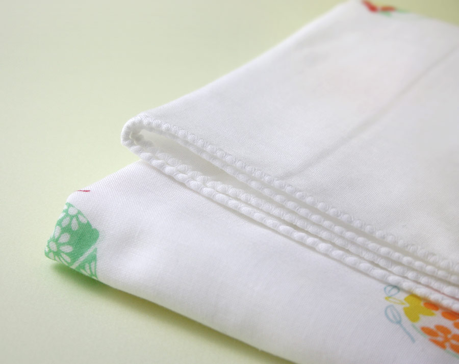 井澤屋のオリジナルガーゼ「まいまいシリーズ」では、かさばらない薄さが魅力の、シンプルな「平織二重ガーゼ」を使用しています。ふきんやハンカチなどの日常使いの小物に最適で、お洗濯を繰 り返しても、比較的しっかりとした表情を保ちます。