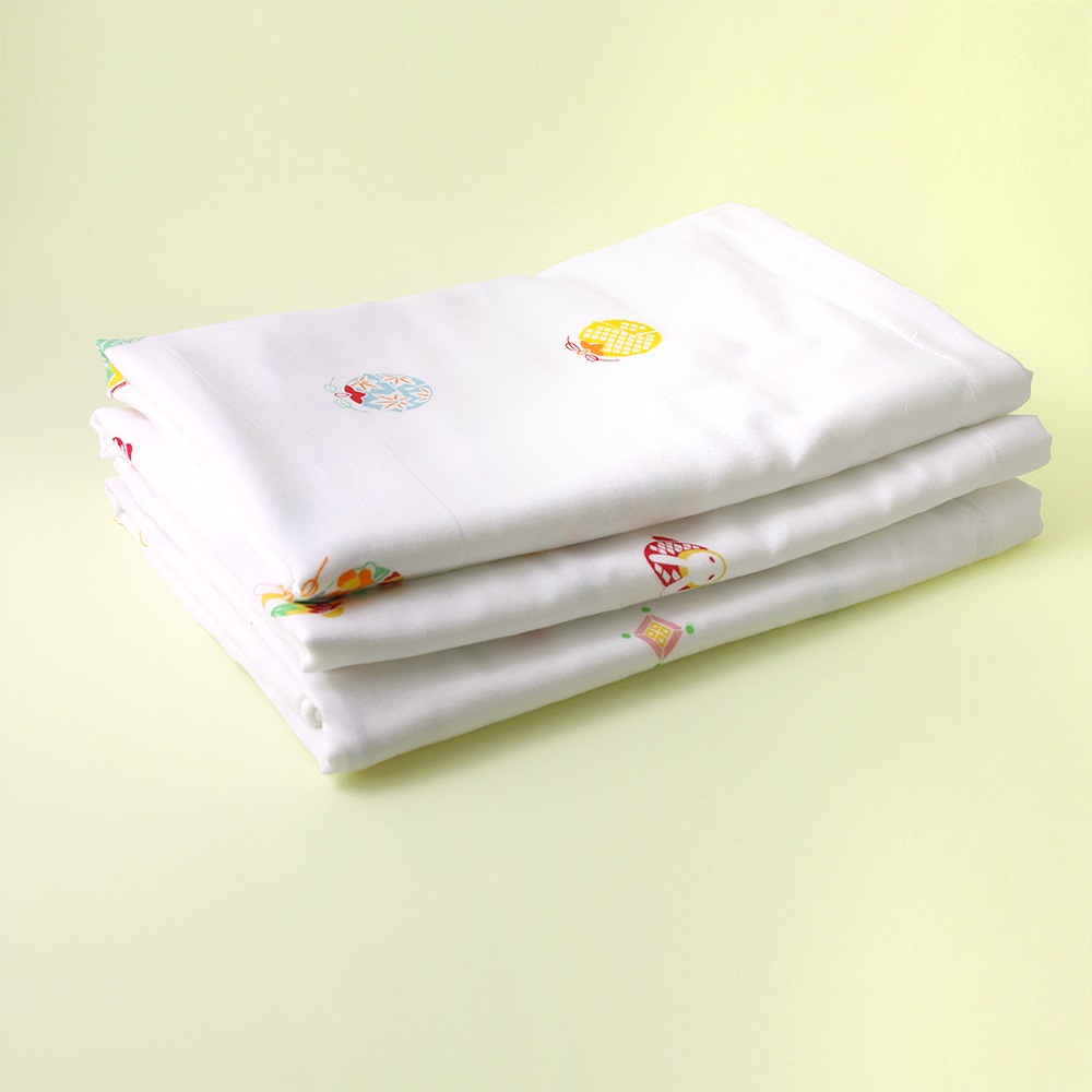 はんなりとした京好みの愛らしい色柄をプリントした「まいまい」シリーズの二重ガーゼ湯上がりです。