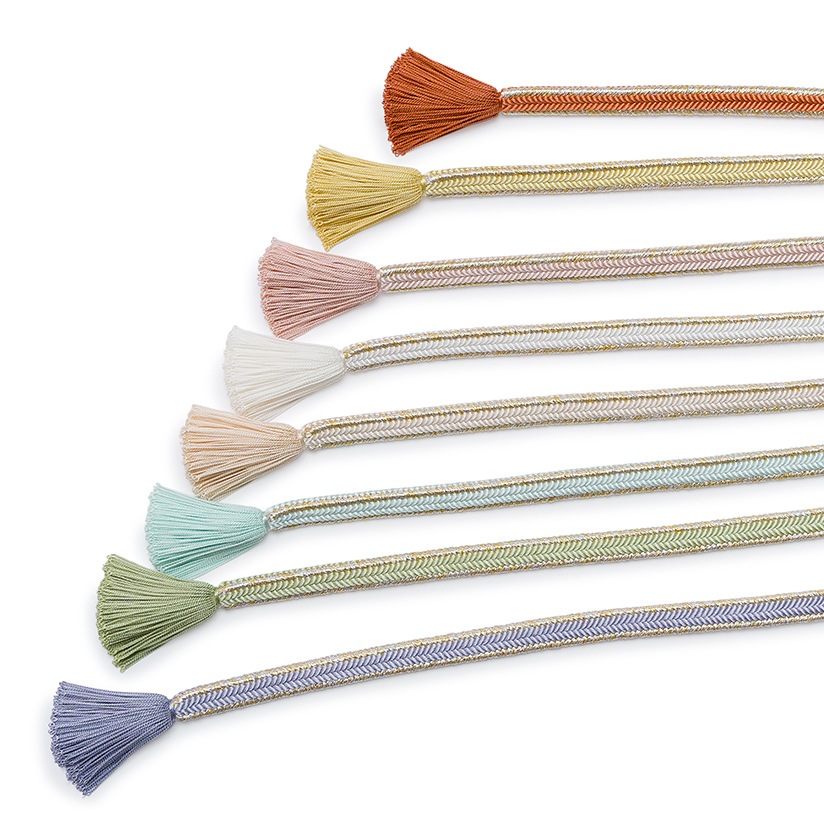 パステル調のお色目に、金糸、銀糸を合わせたすっきりとしたデザインの帯締めです。