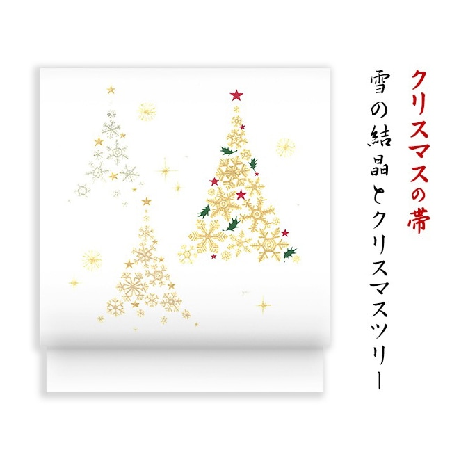 クリスマスの新塩瀬帯「雪の結晶とクリスマスツリー」 白地