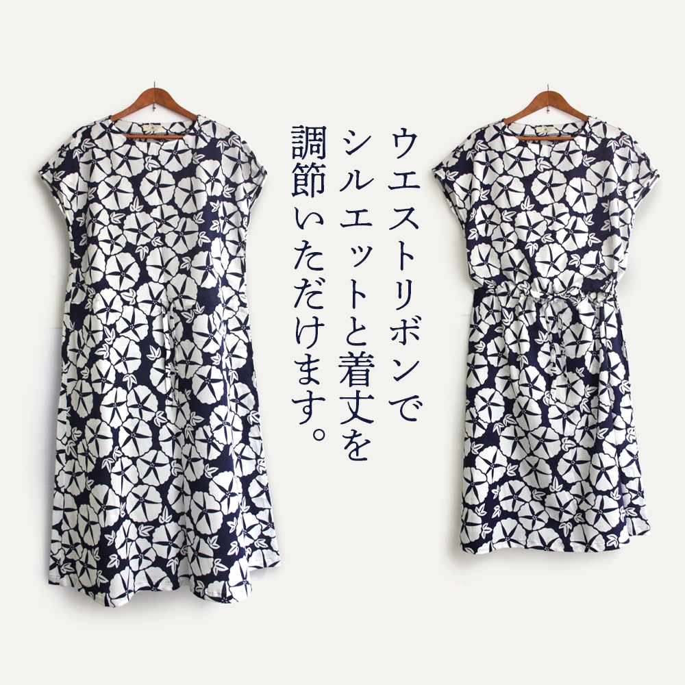 さらりとした肌触りが夏に心地よい、高島ちぢみのワンピース。 ふんわりと肩をおおうフレンチスリーブが女性らしく、ウエストに通したリボンでシルエットを調整いただけます。お家はもちろん、ワンマイルウェアやリゾート着としても、涼しく気持ちよくお召しいただけます。
