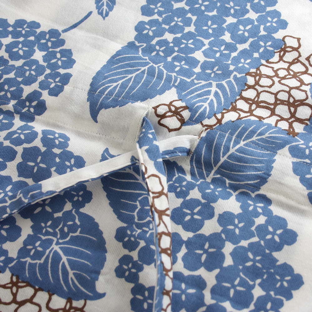 高島ちぢみは、綿糸に強い撚りをかけて織られた、さらりとした肌触りが特徴の、滋賀県高島市を産地とする夏用の薄手の綿織物です。 通常の綿生地よりケバが少なく、また表面が凹凸のシボになっており肌に触れる面積が小さいため熱や湿気がこもりにくく、汗をよく吸って乾きが早い、高温多湿の日本の夏に最適な機能素材と言えます。 現代では機能性に優れた合成繊維が作られるようになりましたが、長らくステテコや肌着などで愛用されてきたこの伝統織物が、今再び見直されています。 軽くて伸縮性があるため着用や取り回しにストレスが少なく、ちょっとしたシワなら霧吹きで水をかけるだけで気にならなくなる、丈夫でお洗濯にも強く洗濯機で丸洗いできるなど、昨今の厳しい夏を乗り越える一助として、ぜひお試しいただきたい素材です。