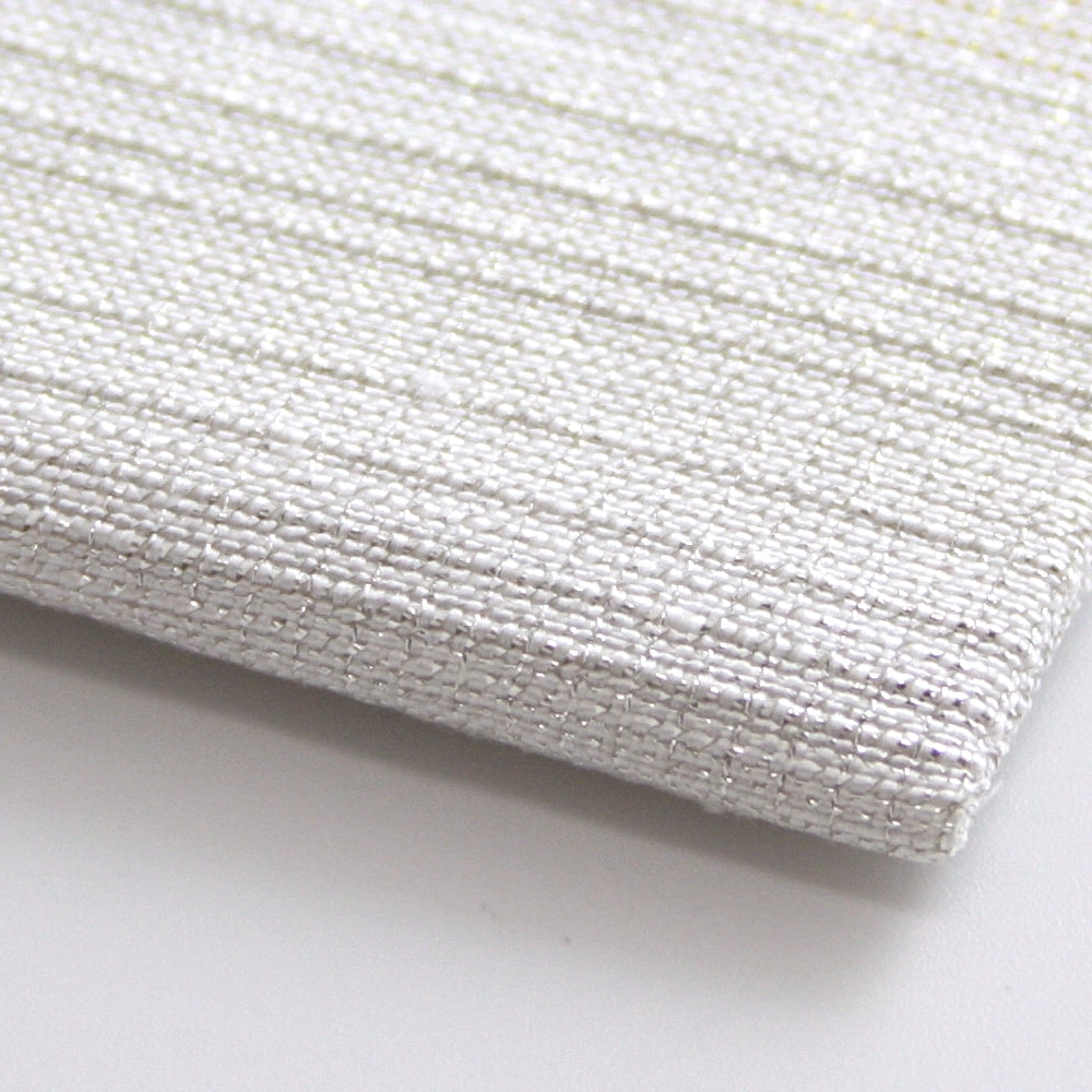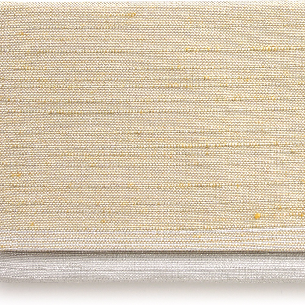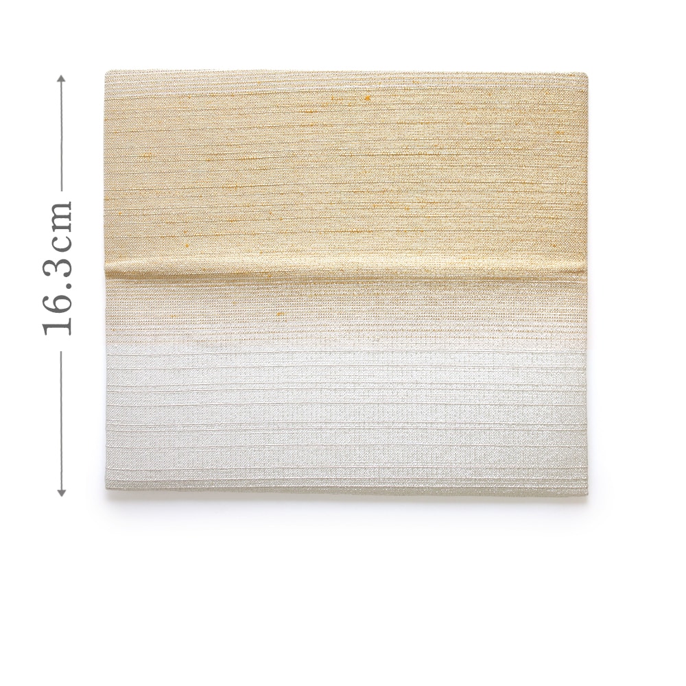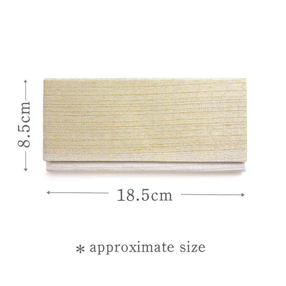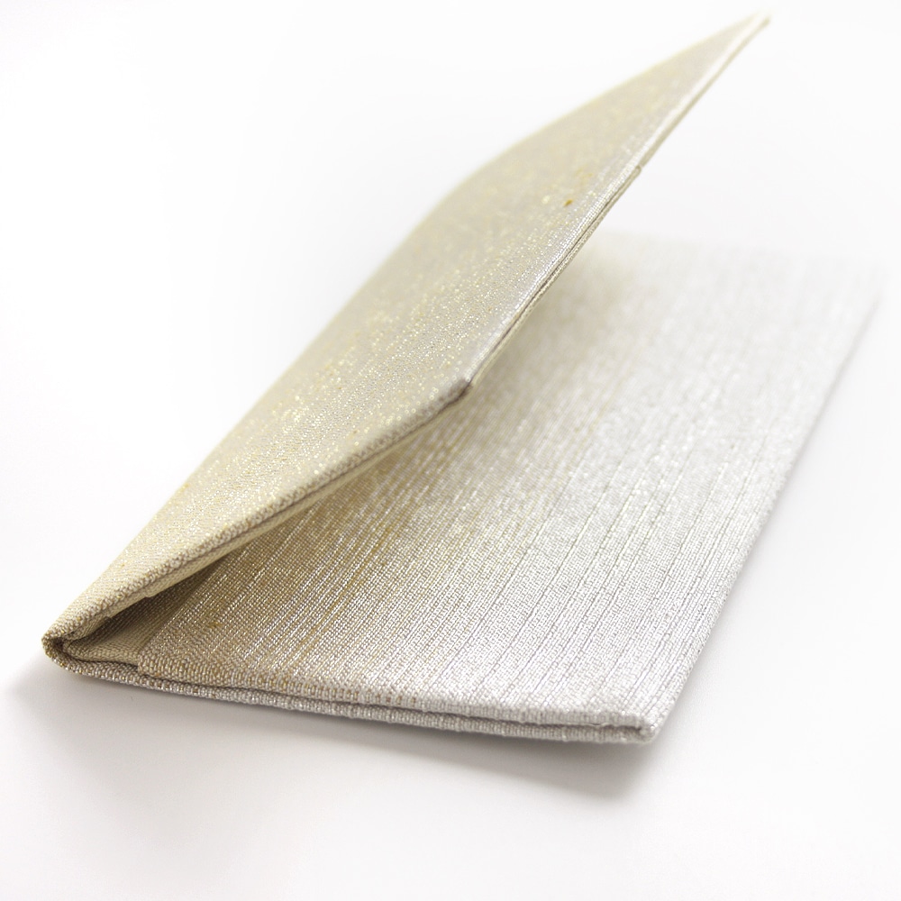 白地にグラデーションになるように色糸を織り込んだ、上品な印象の札入れです。角度により銀糸がきらめき、お手元に華やかさを添える効果も。クラッチバッグや小さめのバッグにもかさばらずにお使いいただける薄手でスリムなサイズ感も魅力です。