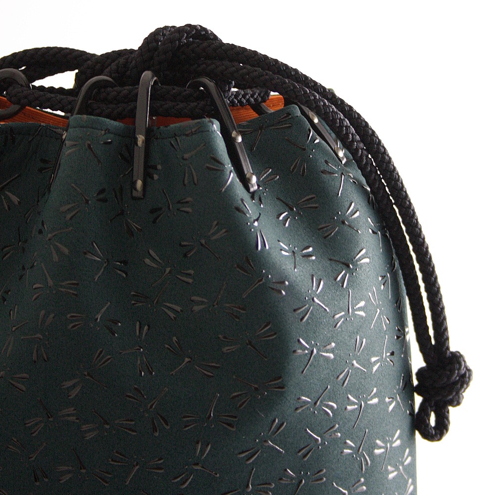 ■素材:鹿革・漆/正絹(紐)/プラスチック(コキ)/レーヨン(裏地)