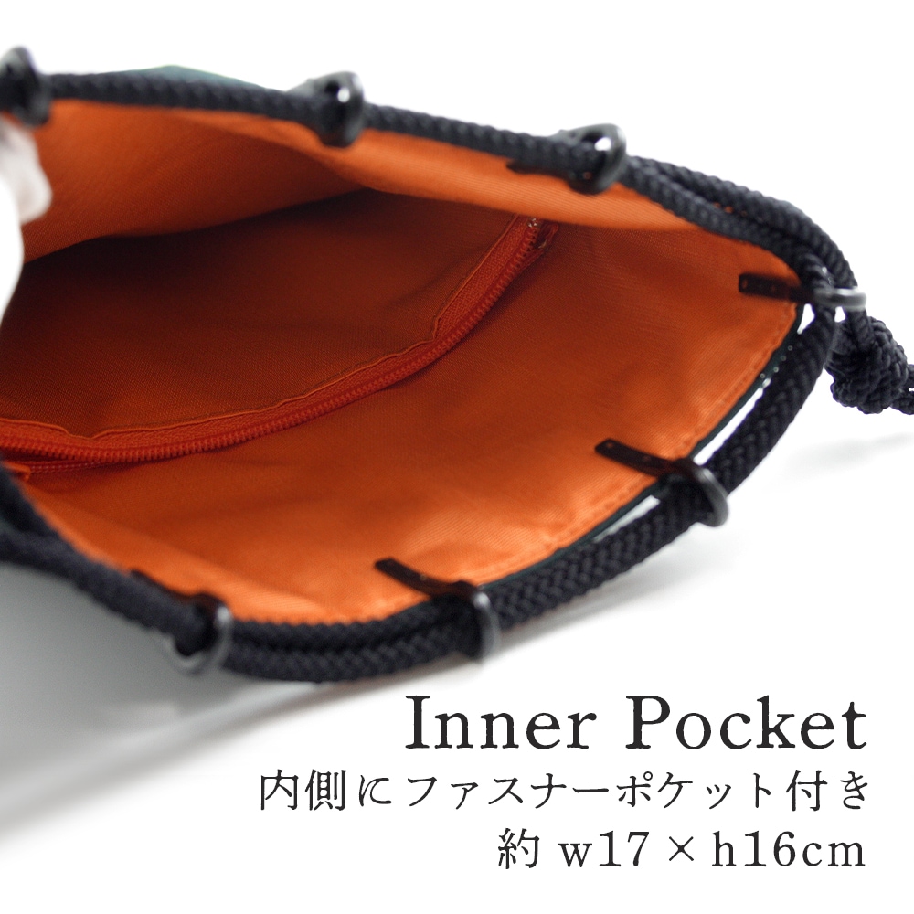This is a Gassai bag (Shingen bag) from INDEN-YA, a long-established Koshu Inden shop. The name "Gassai Bag" comes from the word "Issai Gassai" it means "everything in total". You can store your wallet, smartphone, handkerchief, etc., and use it as a stylish and mature handbag to carry with Japanese kimono or Western clothing. It is also recommended for storing tablet devices such as iPad.