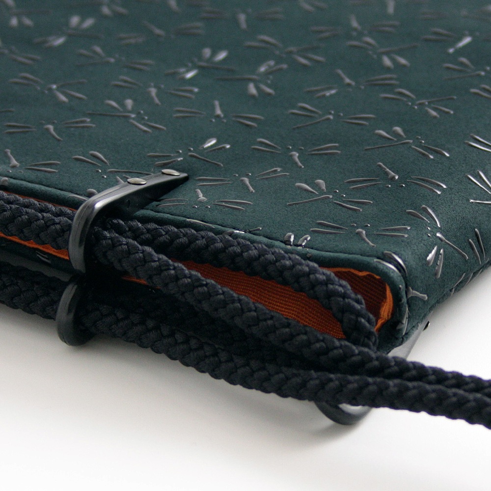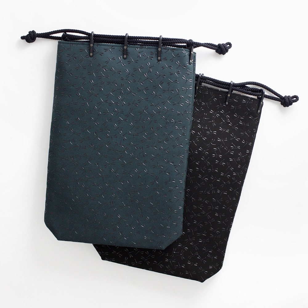 モダンでシックな甲州印傳「ひそか」シリーズの、合切袋(信玄袋)です。「合切袋(がっさいぶくろ)」の名は“一切合切(いっさいがっさい)”という言葉に由来するそうです。お財布やスマホ、ハンカチなどを納めて、和装・洋装、性別を問わず、こなれた印象のお洒落なハンドバッグとしてお持ちいただけます。また、ipadなどのタブレット端末の収納にもおすすめです。