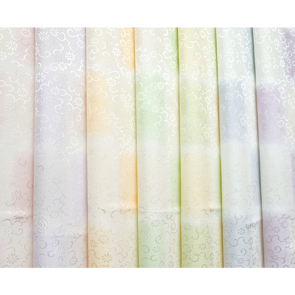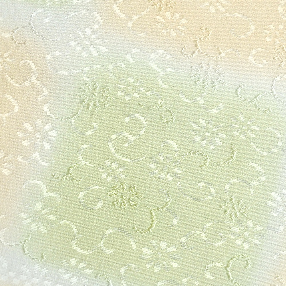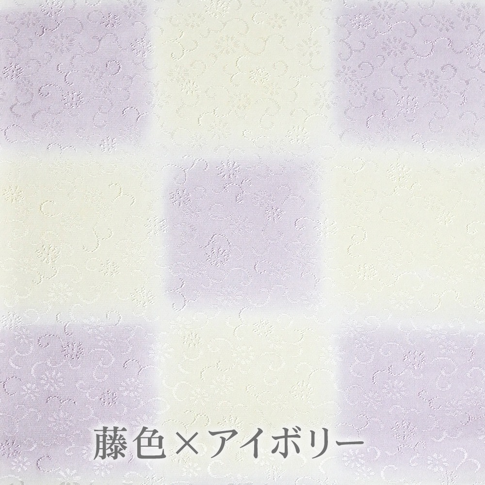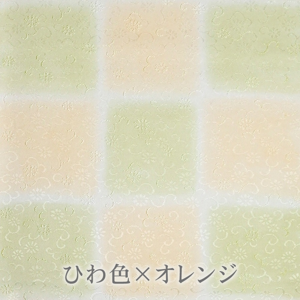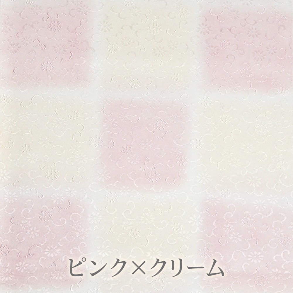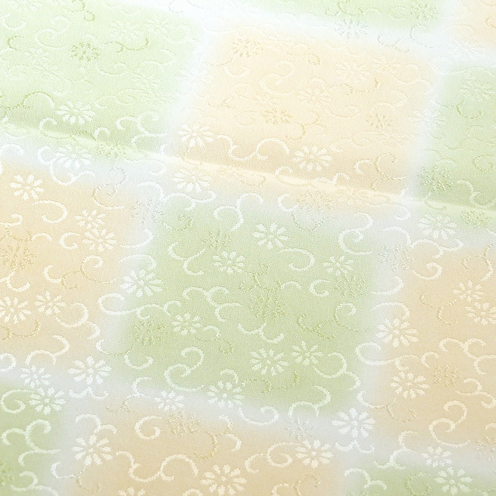 パステル調の優しい色合いと、花唐草の地紋が可愛らしい印象の帯揚げです。大ぶりの市松模様は、2つのお色が交互に帯からのぞくイメージ。豊富なお色からお選びいただけます。
