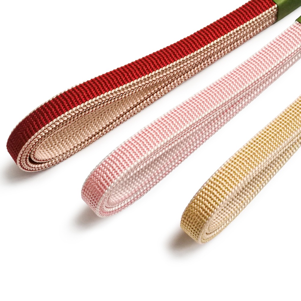 リバーシブルでお使いいただける、シンプルなデザインの三分紐です。淡いお色目と濃いお色目をそれぞれご用意いたしました。別売りの帯留めや、お手持ちの帯留めと合わせてコーディネートをお楽しみください。