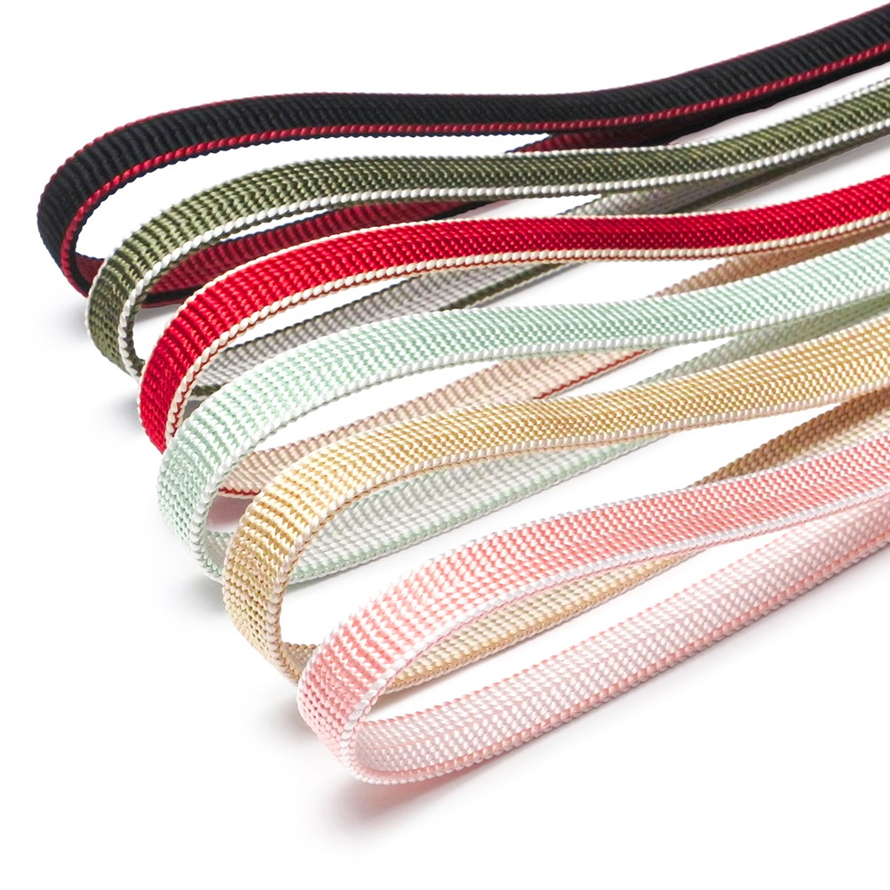 リバーシブルでお使いいただける、シンプルなデザインの三分紐です。淡いお色目と濃いお色目をそれぞれご用意いたしました。別売りの帯留めや、お手持ちの帯留めと合わせてコーディネートをお楽しみください。