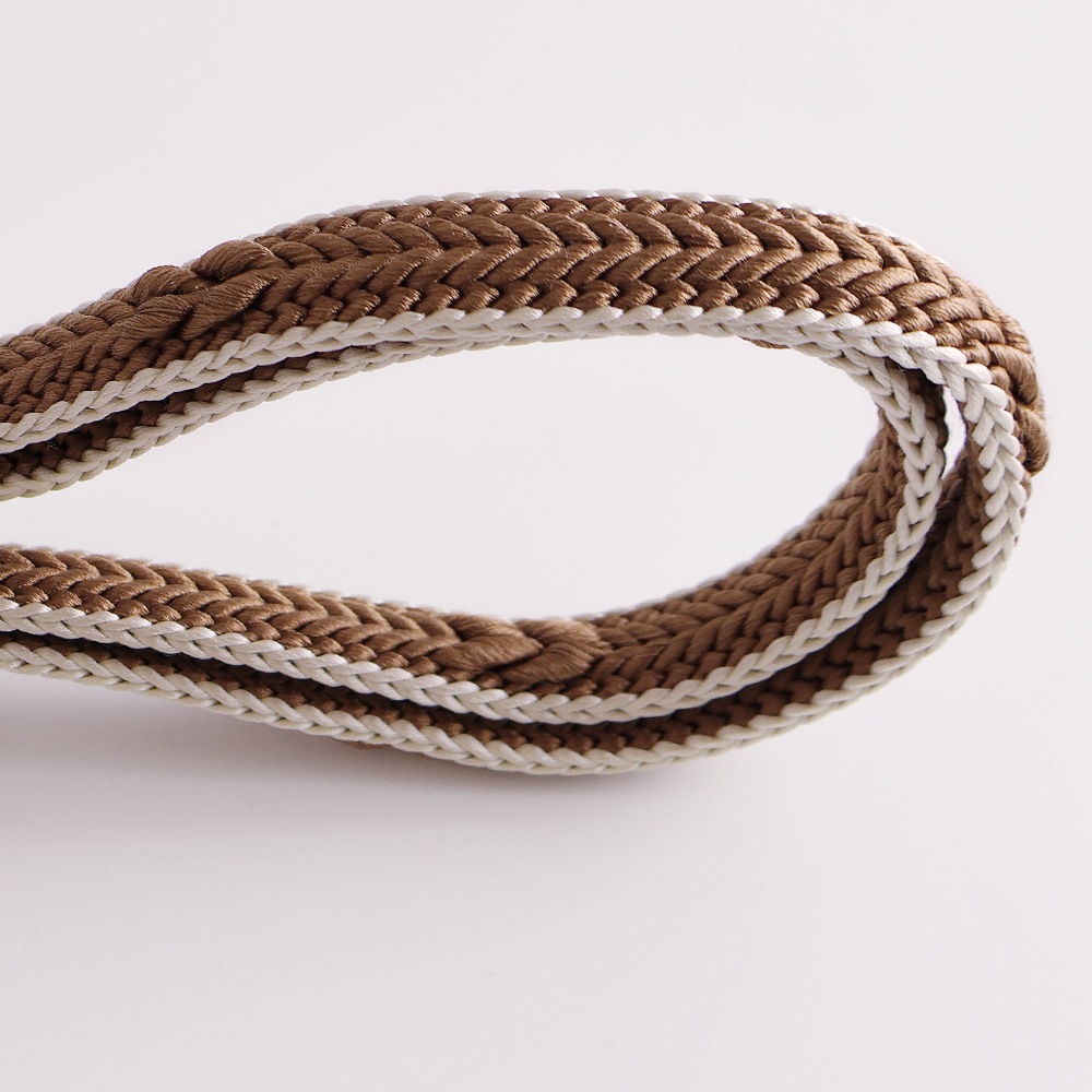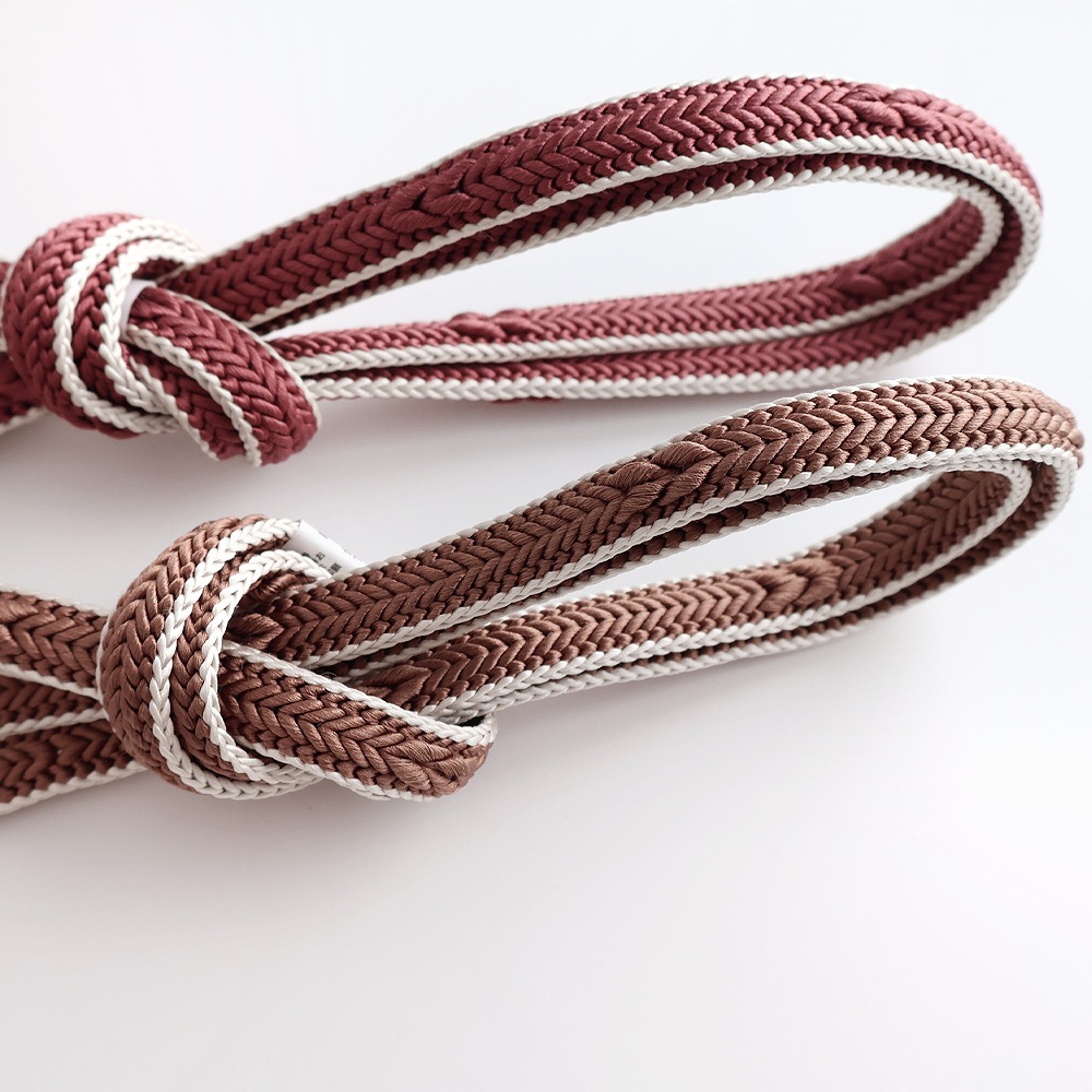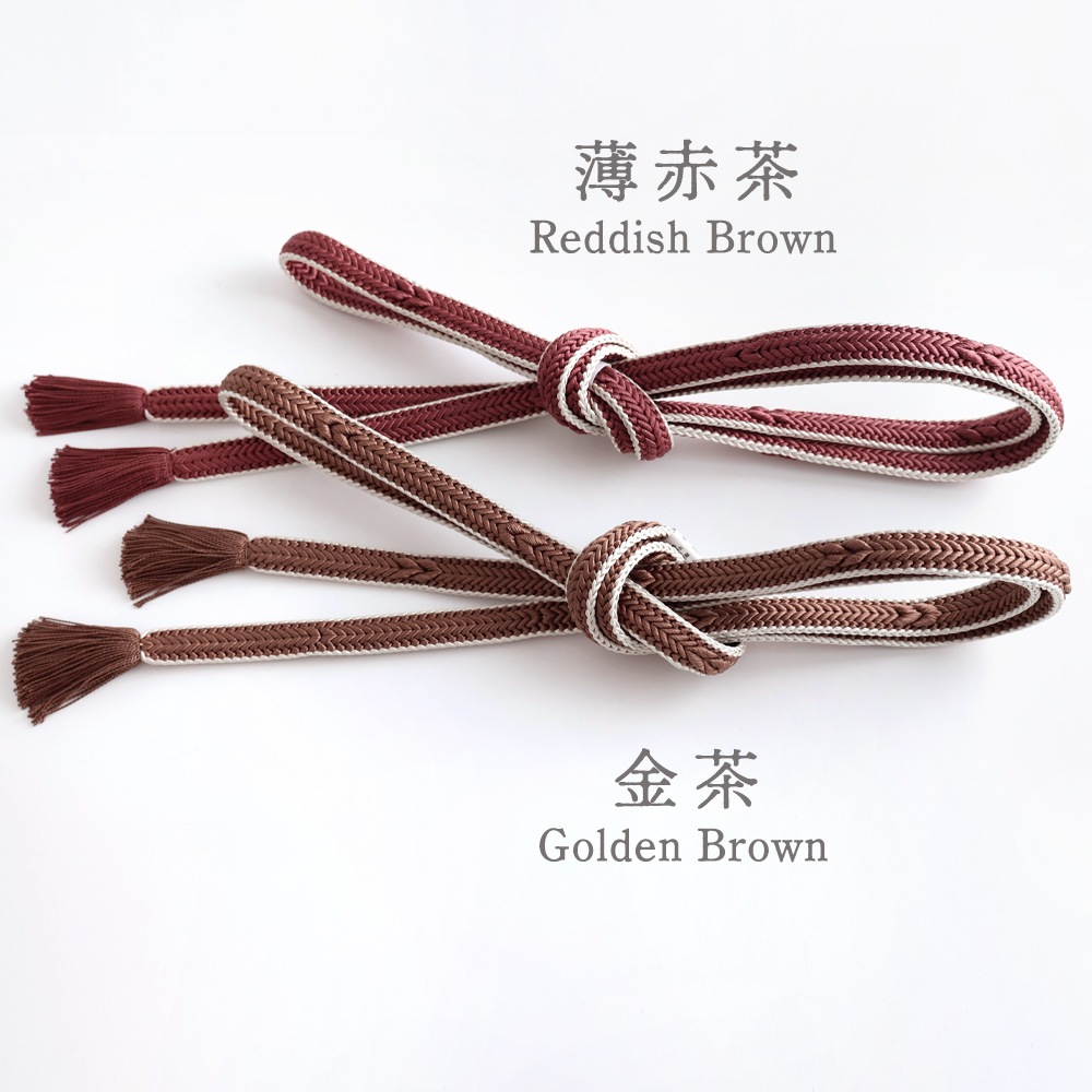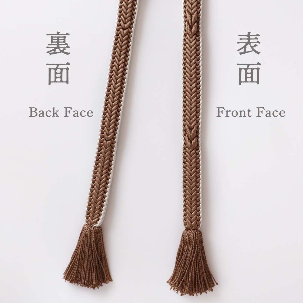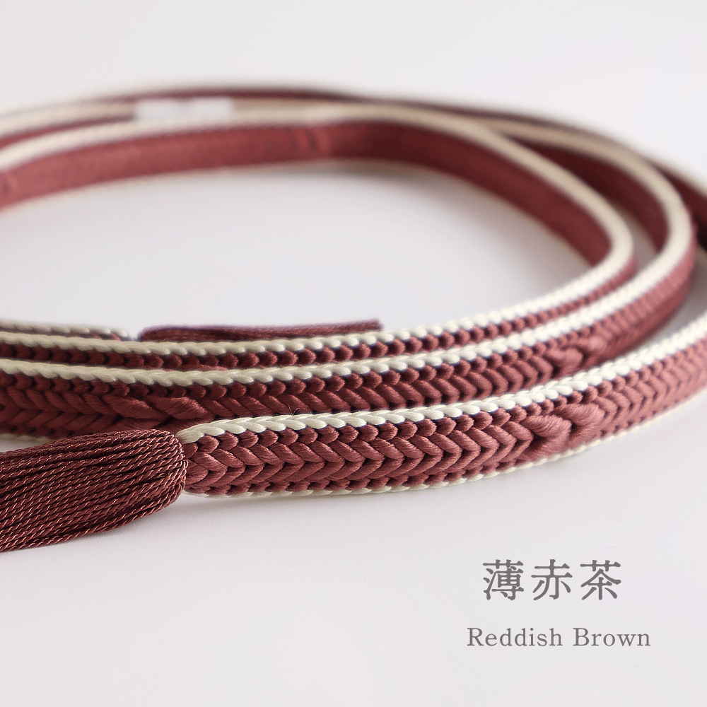 柔らかく、滑りの良い畝源氏組の帯締めです。立体的な編目が美しく、サイドをアイボリーまたはえんじの糸で縁どったメリハリのあるデザイン。幅が広めなので存在感があります。落ち着いたお色目を中心にご用意いたしました。