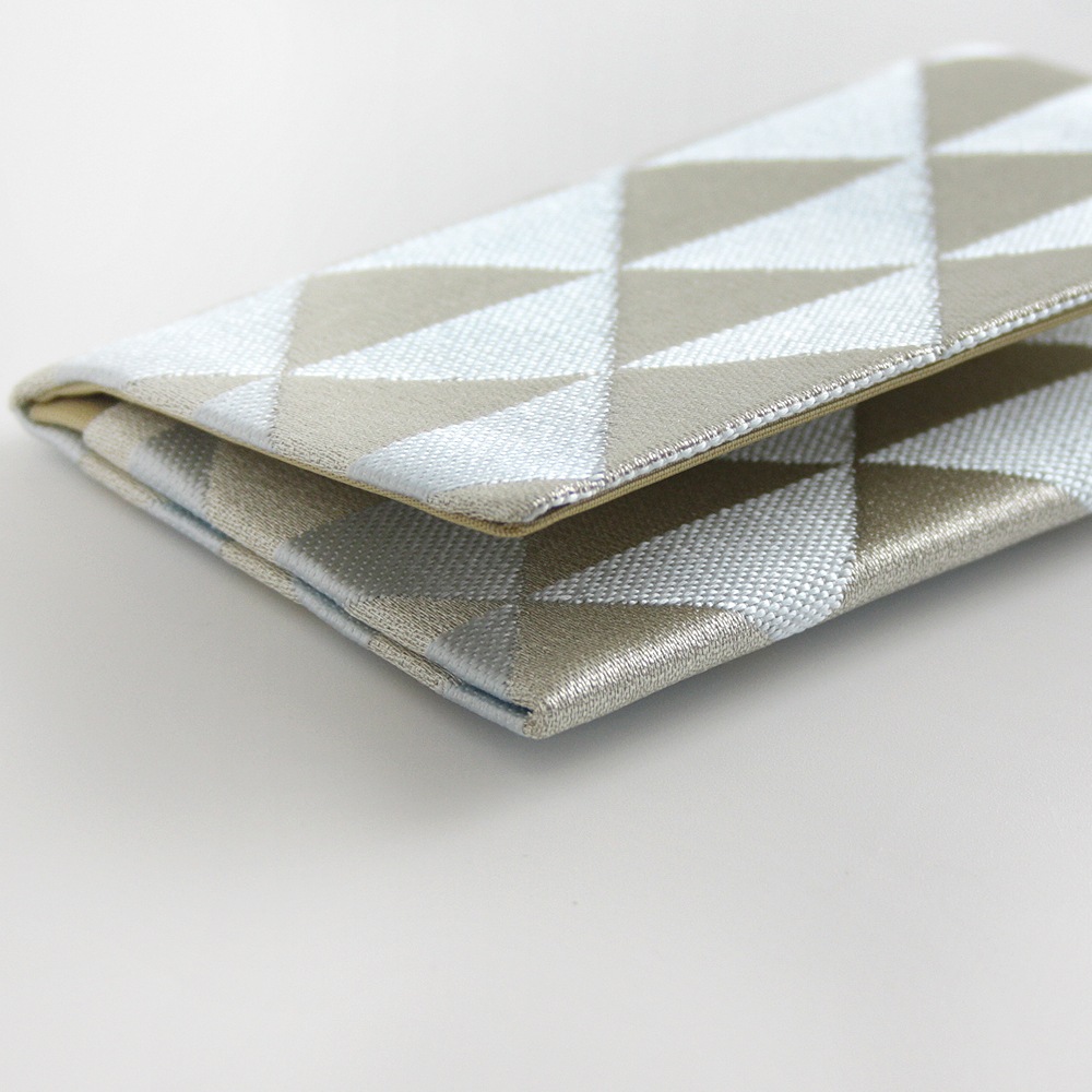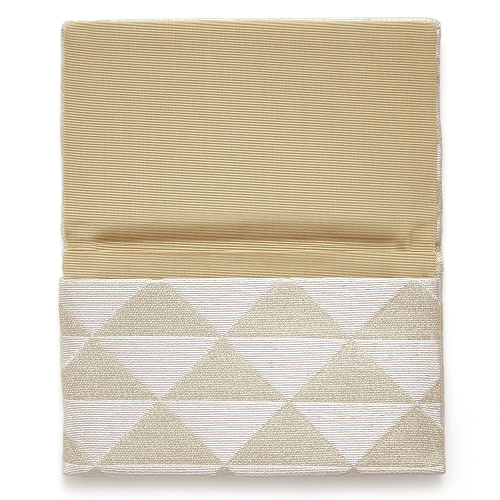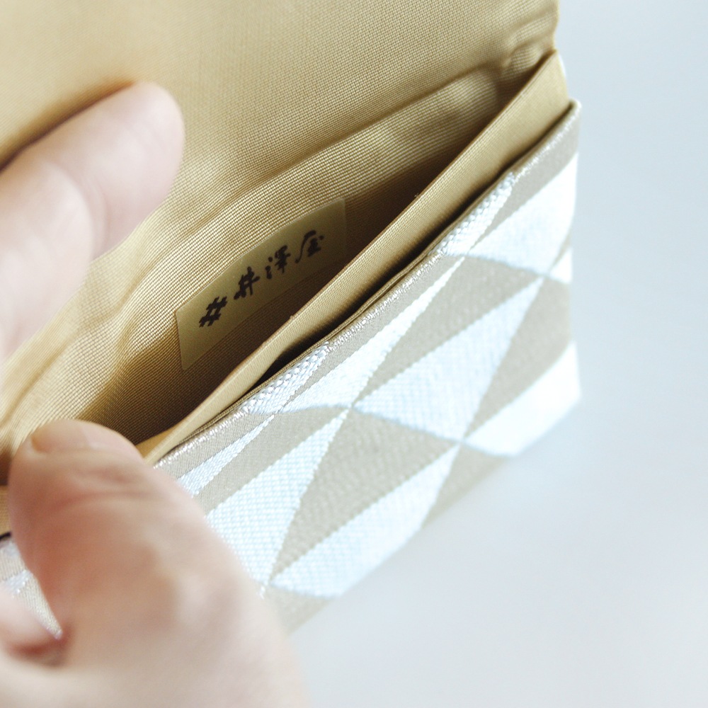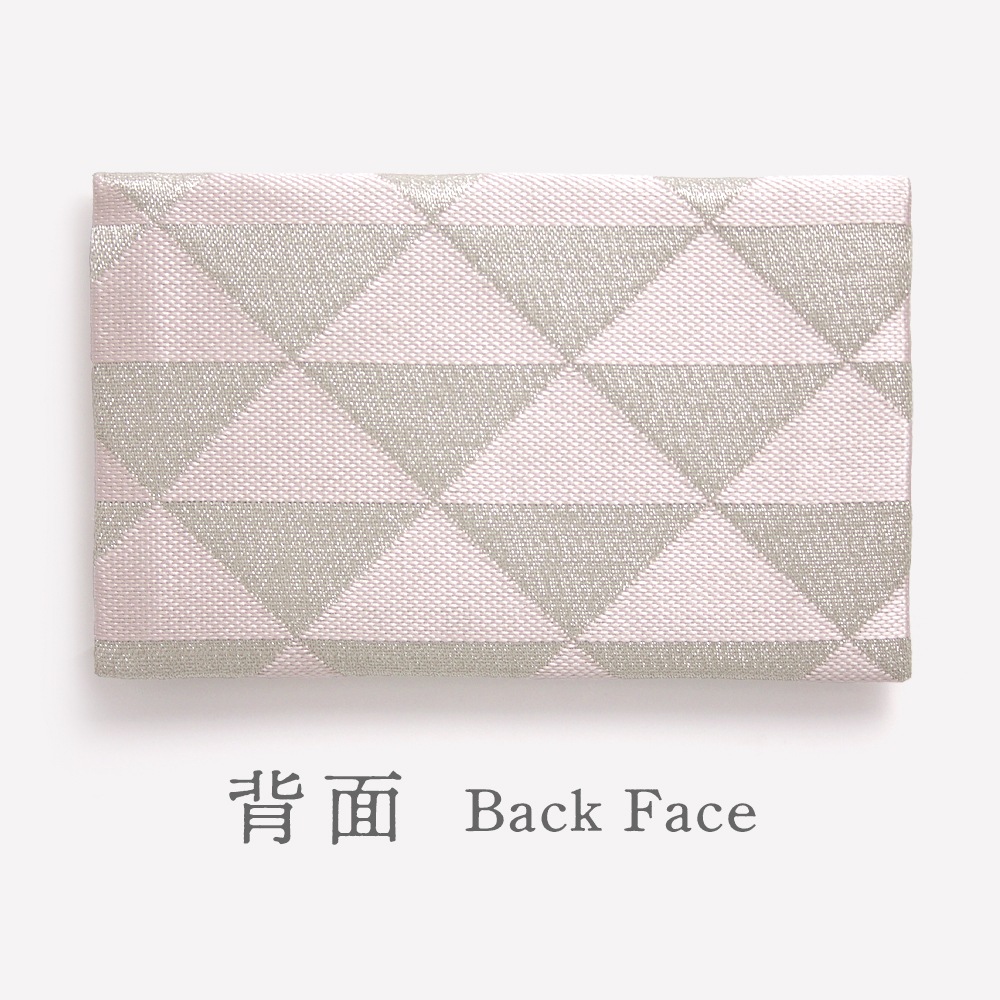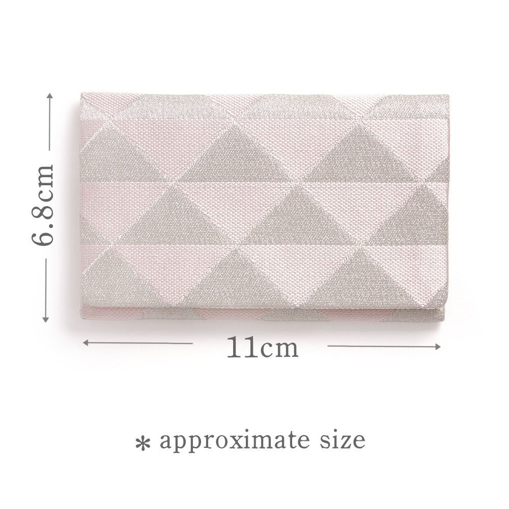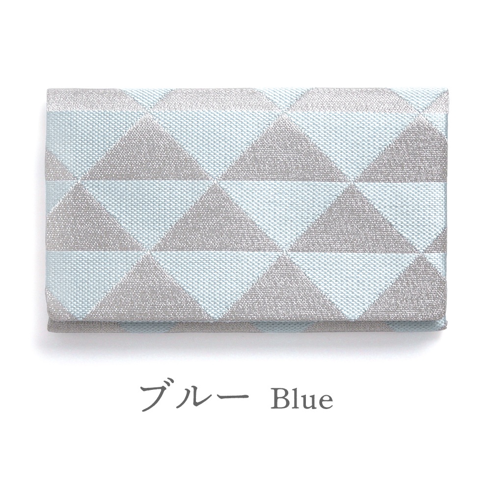 色糸と金銀糸でうろこ文様を描いた、上品で粋な印象の名刺入れです。小さめのバッグや帯にはさんでもかさばらずにお持ちいただける薄手タイプ。角度により表情を変える立体的な光沢の変化もお楽しみいただけます。鱗文様は厄除けとしての意味合いもあり、贈りものにもおすすめです。