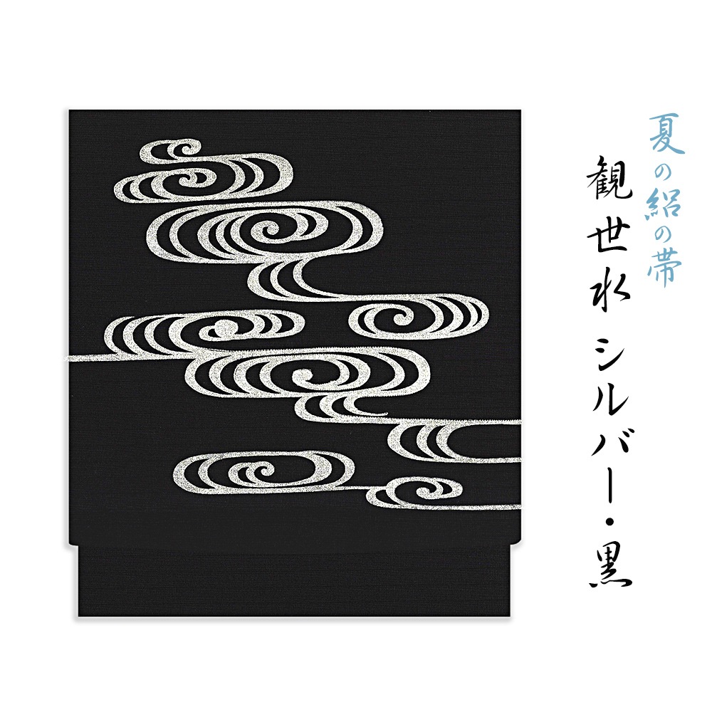 夏の新塩瀬帯「観世水 シルバー」 絽・黒地