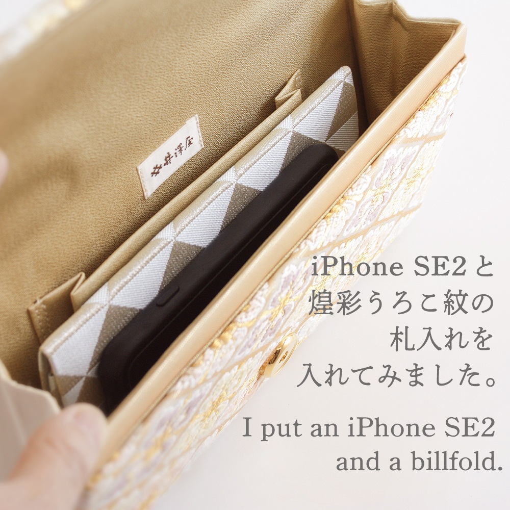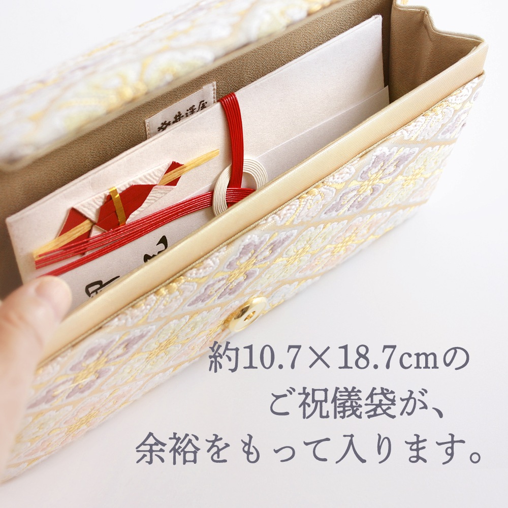 横長のスマートな形で持ちやすく、和装はもちろんドレスなどの洋装に合わせていただくのも素敵です。