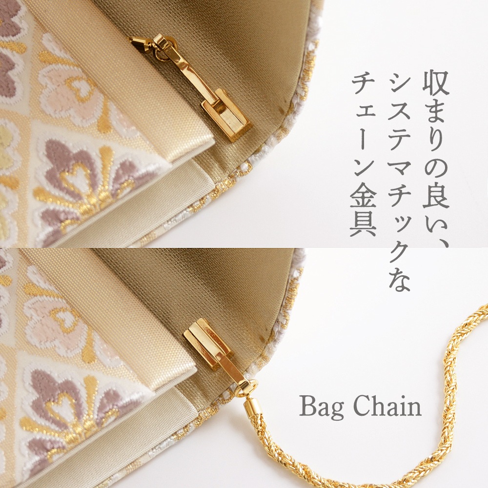 ■素材: 西陣織(正絹・金銀糸)/留め具・チェーン: 金属