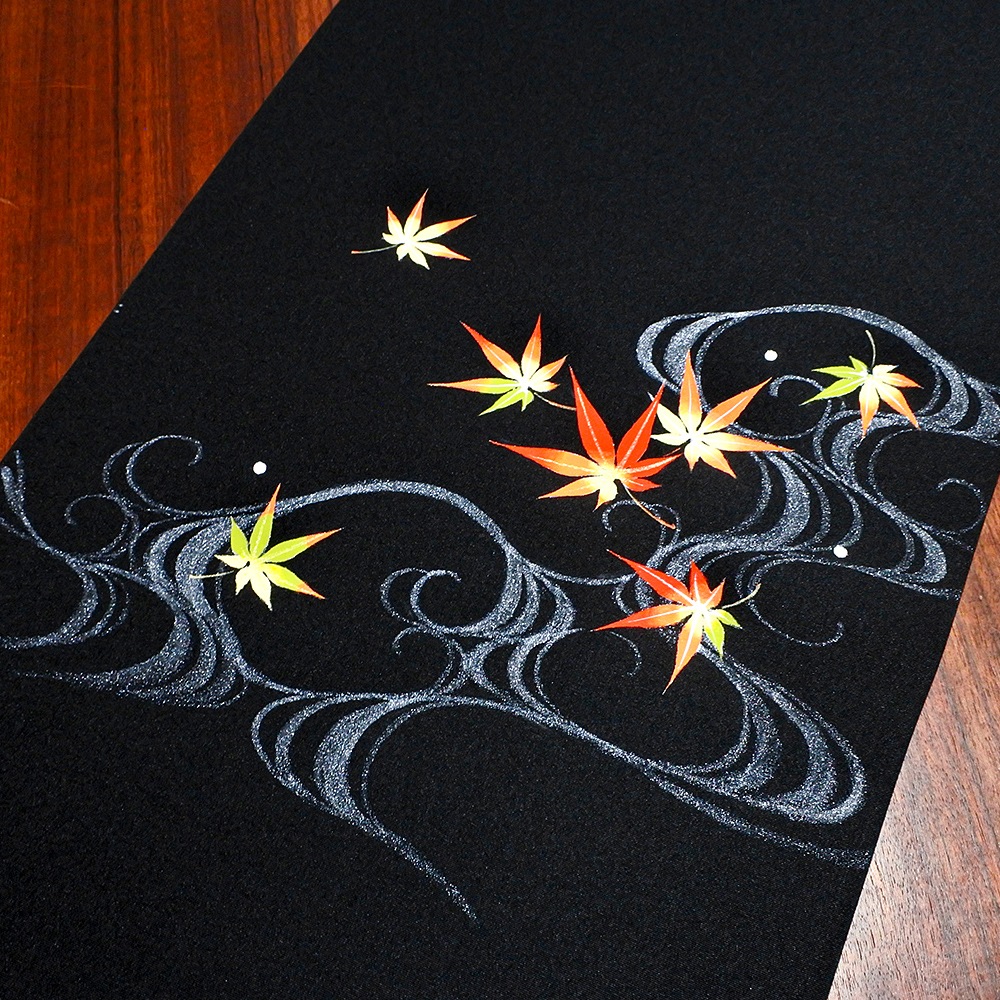 秋の新塩瀬帯「光琳水にもみじ」黒地