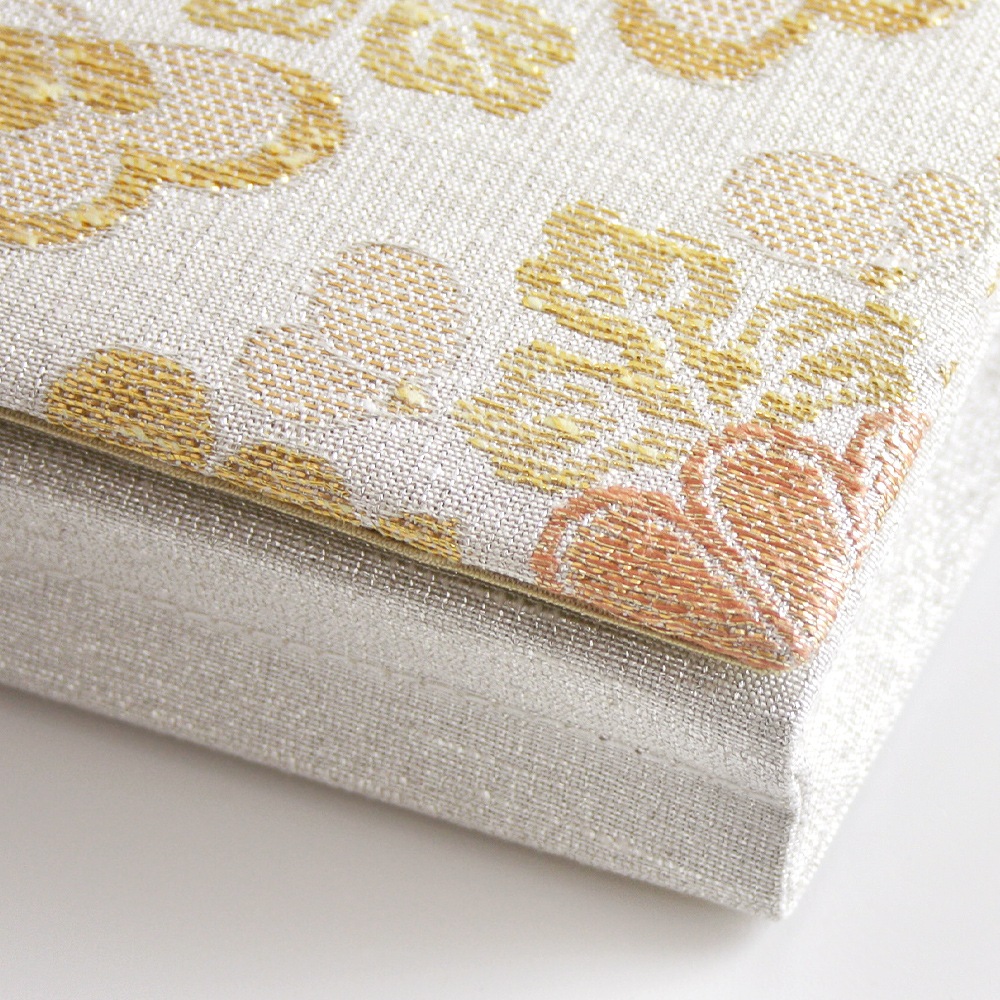 真綿の糸に金箔を巻きつけて作る金糸の一種で、微妙な乱反射による深みのある立体的な表情が魅力的な、西陣高級綴れ織の技法のひとつです。 明時代の中国から渡ってきた裂(きれ)を元に約300年の時を超えて研究・復元され、 独自に改良を加えられた、他に類を見ない独特のしなやかさと輝きを持った名品です。