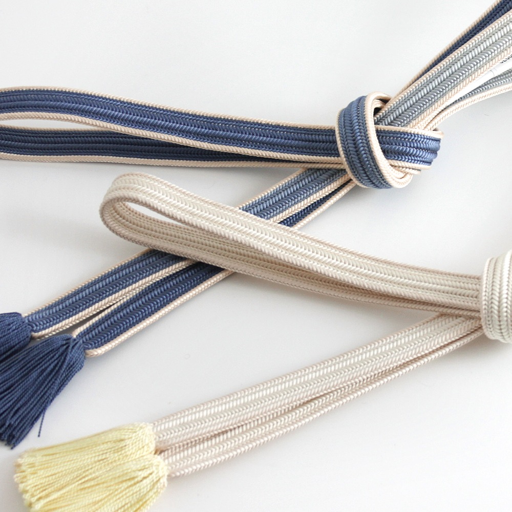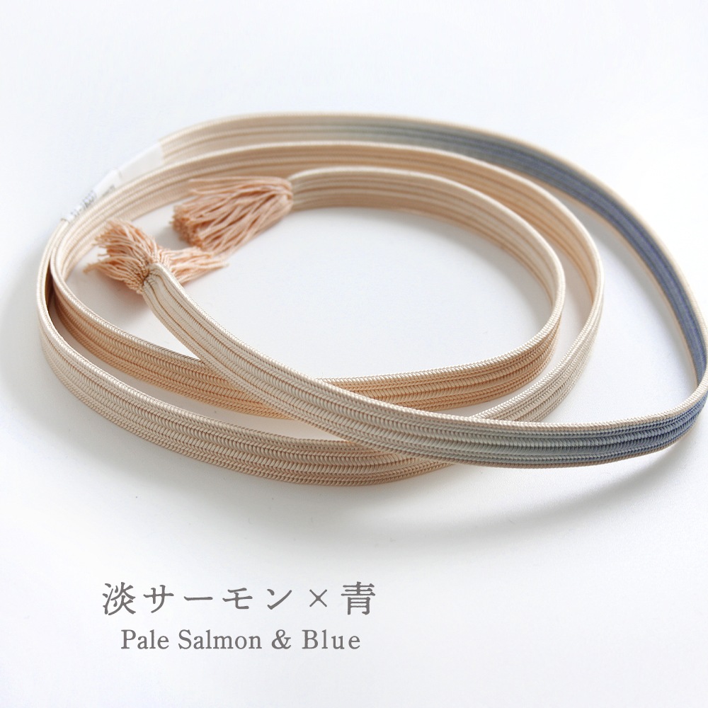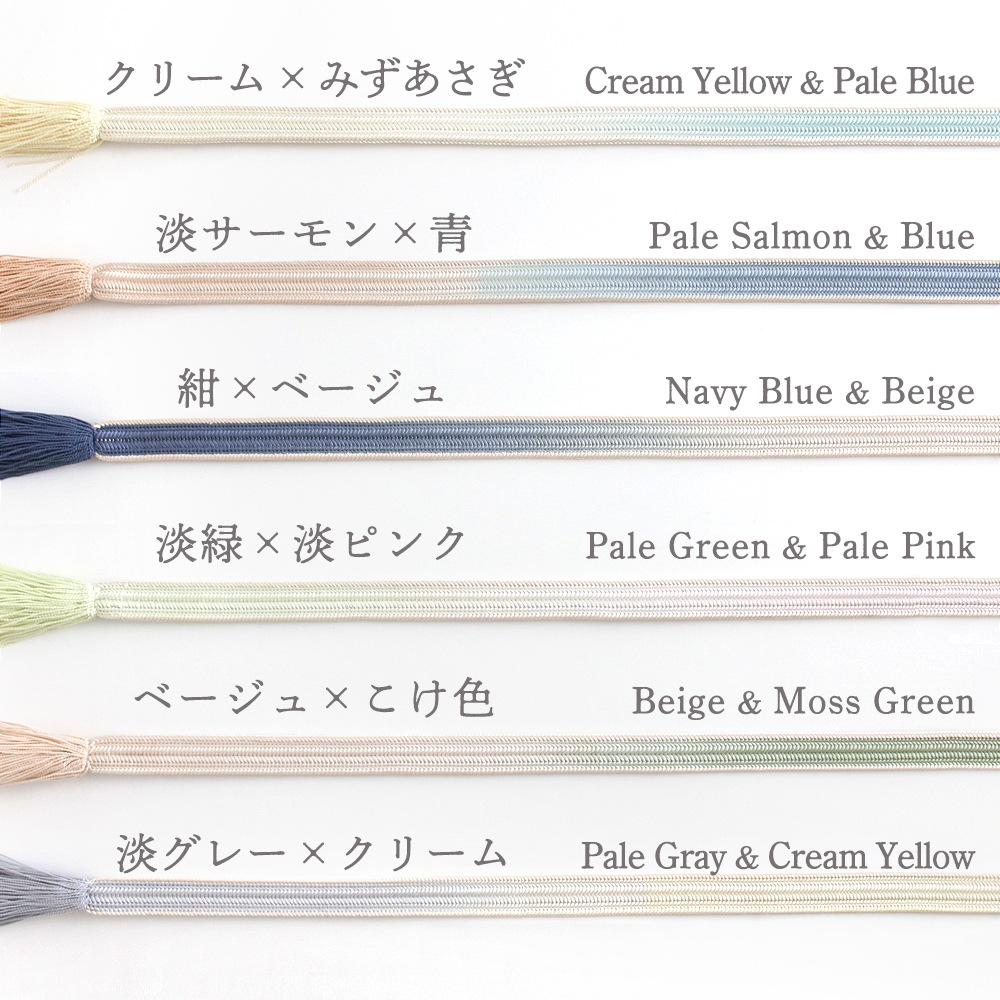 やわらかなお色目のグラデーションが美しい、しなやかな綾竹組の帯締めです。上下に添えられた淡いベージュのラインが品良くきちんとした印象。コーディネイト次第でおしゃれ着から訪問着まで、幅広くお使いいただけます。