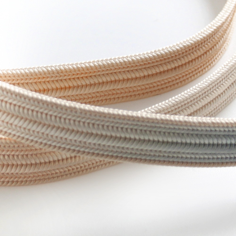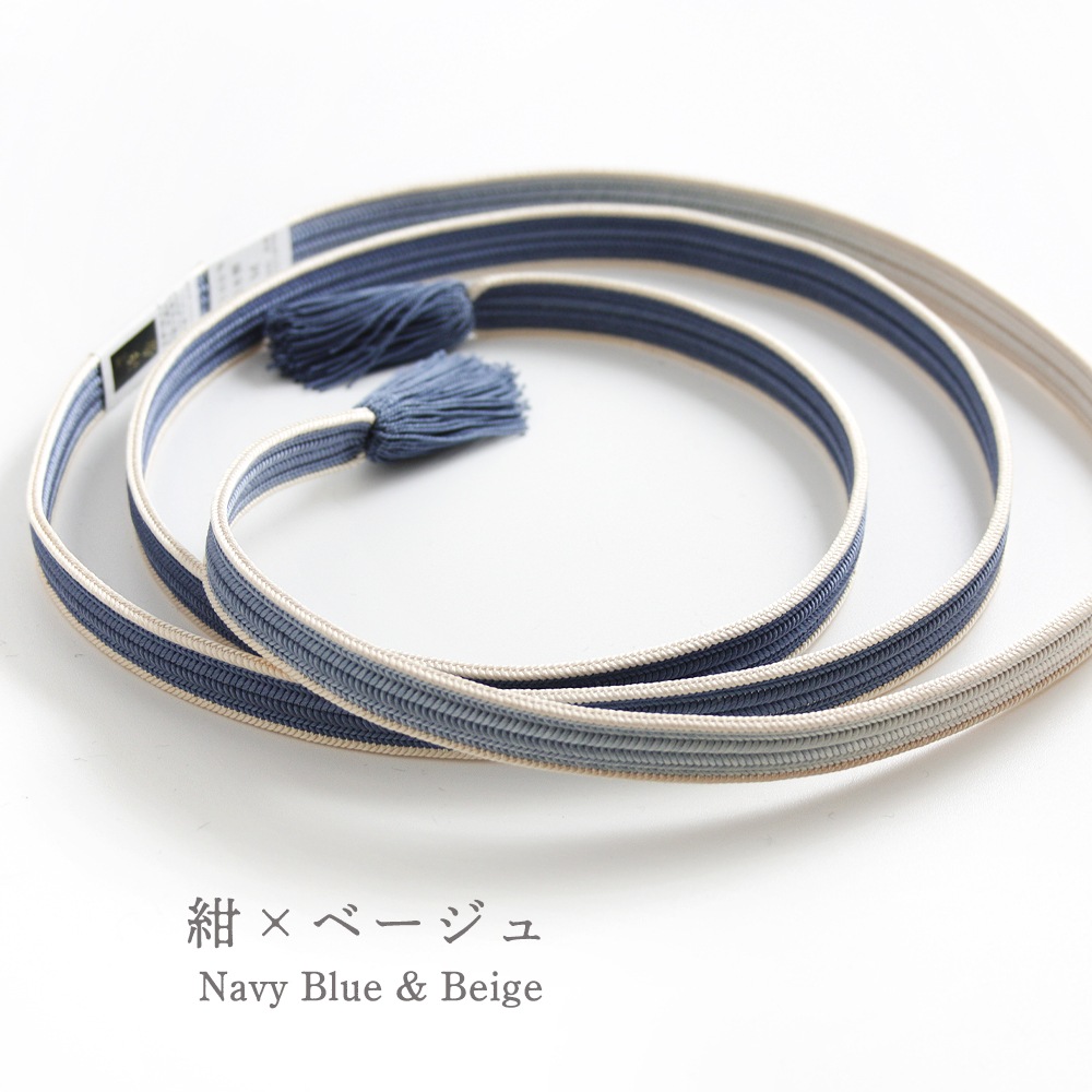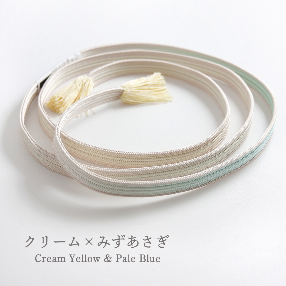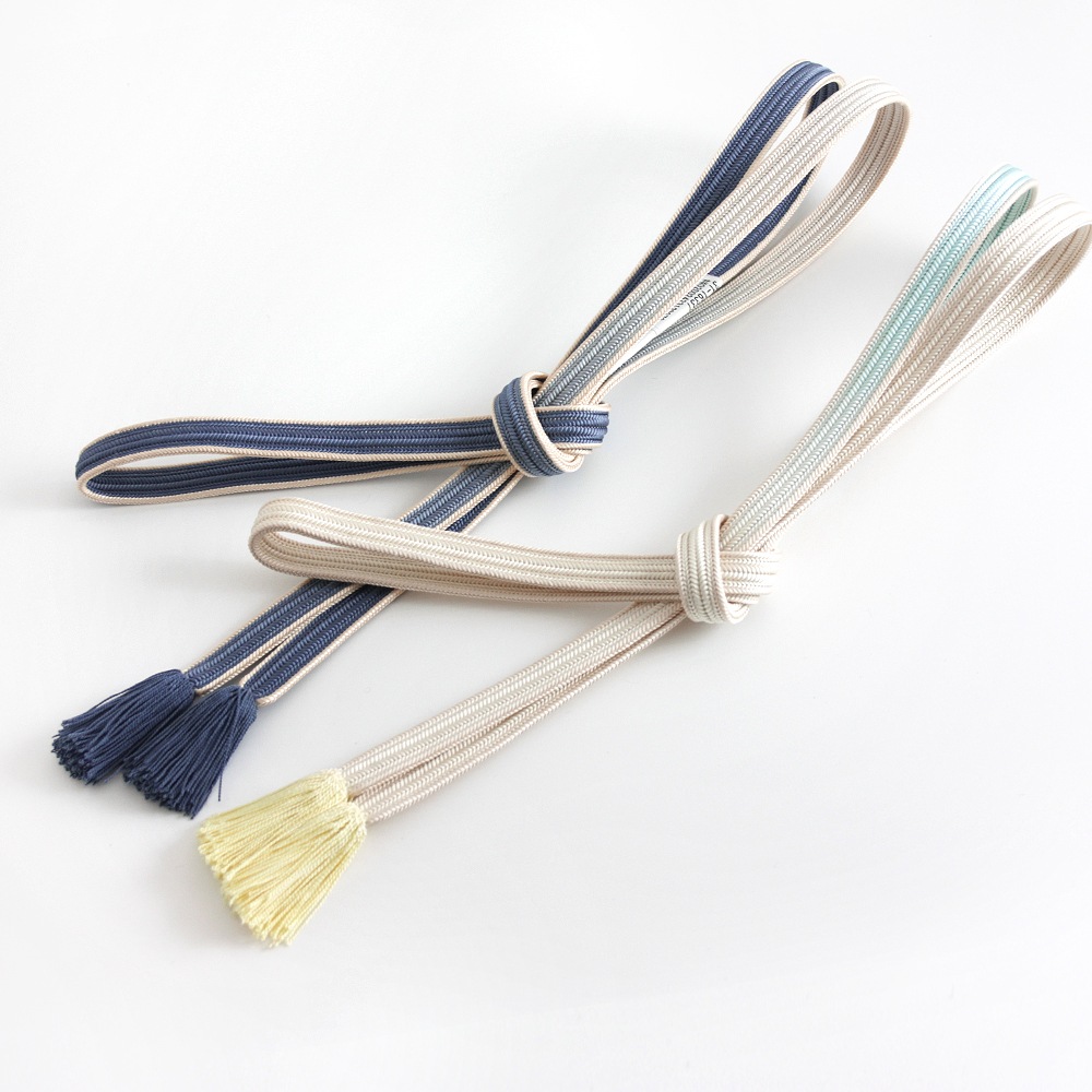 やわらかなお色目のグラデーションが美しい、しなやかな綾竹組の帯締めです。上下に添えられた淡いベージュのラインが品良くきちんとした印象。コーディネイト次第でおしゃれ着から訪問着まで、幅広くお使いいただけます。