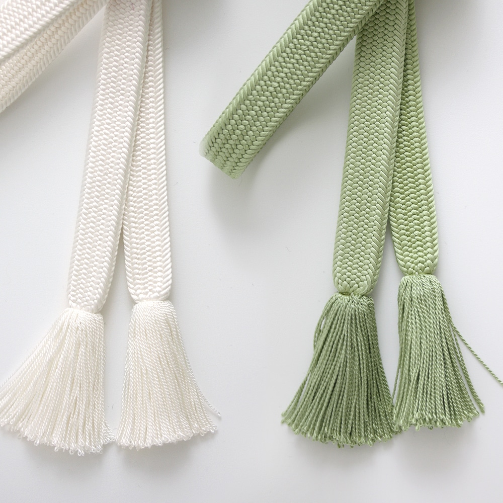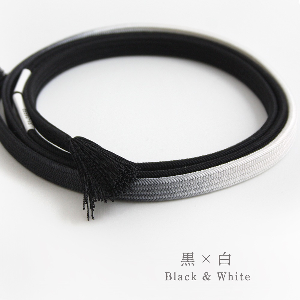 やや厚みのある、柔らかくしなやかな角朝組の帯締めです。一部にアクセントカラーを加えた美しい2色の配色をお楽しみください。おしゃれ着から訪問着まで、幅広くお使いいただけます。