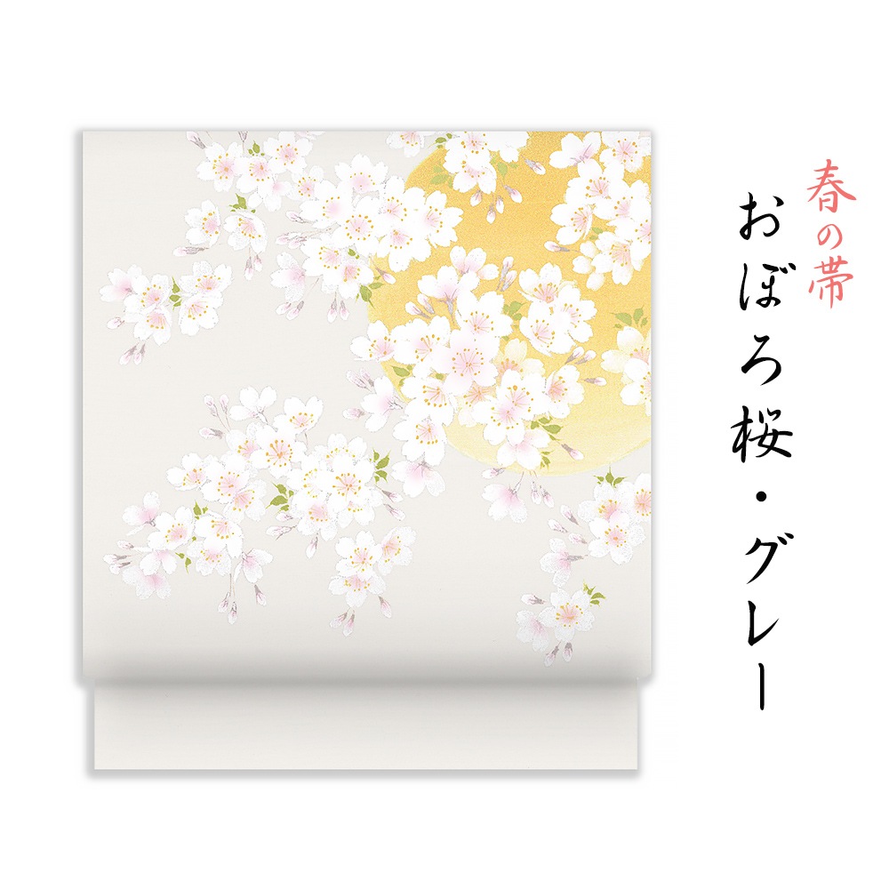 春の新塩瀬帯「おぼろ桜」グレー地