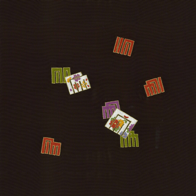源氏香の文様に桜や菊など四季の彩りをのせた、刺繍の塩瀬帯です。