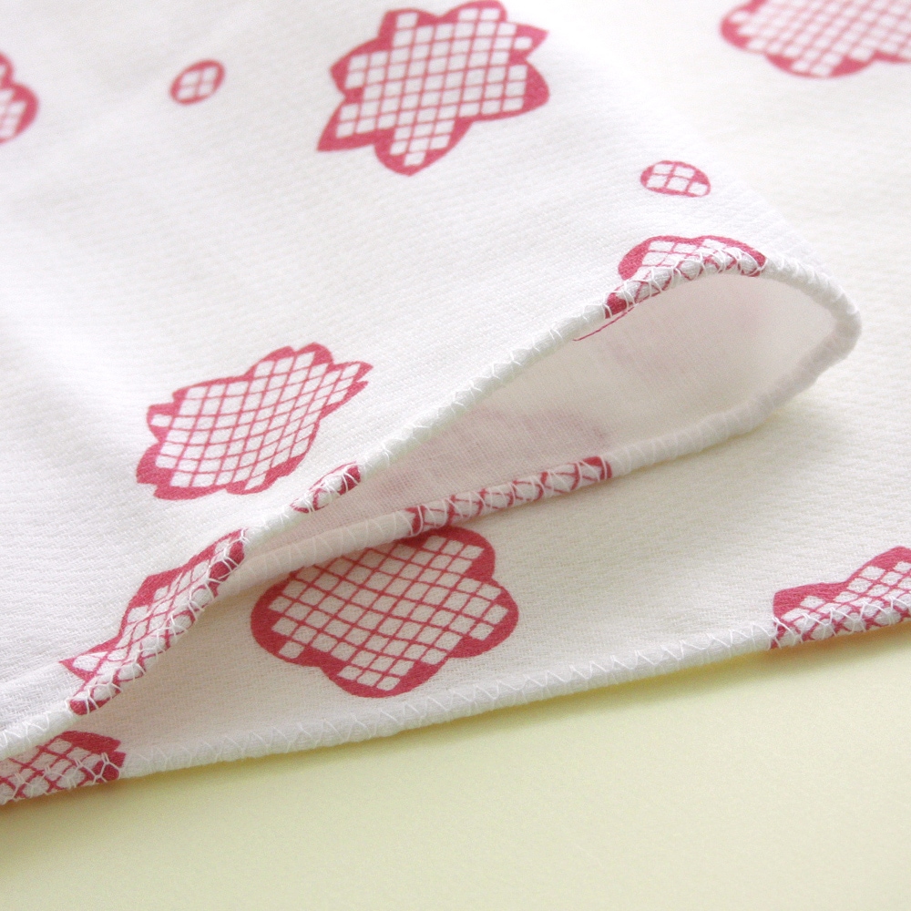 井澤屋のオリジナルガーゼ「りんりんシリーズ」では、ふんわりとした凹凸のある「ジャカード織二重ガーゼ」を使っております。お洗濯を繰り返すごとに立体的な織目がたっぷりと空気を含んで蒸れにくく、柔らかな肌触りと、軽い着心地・使い心地をお楽しみいただけます。