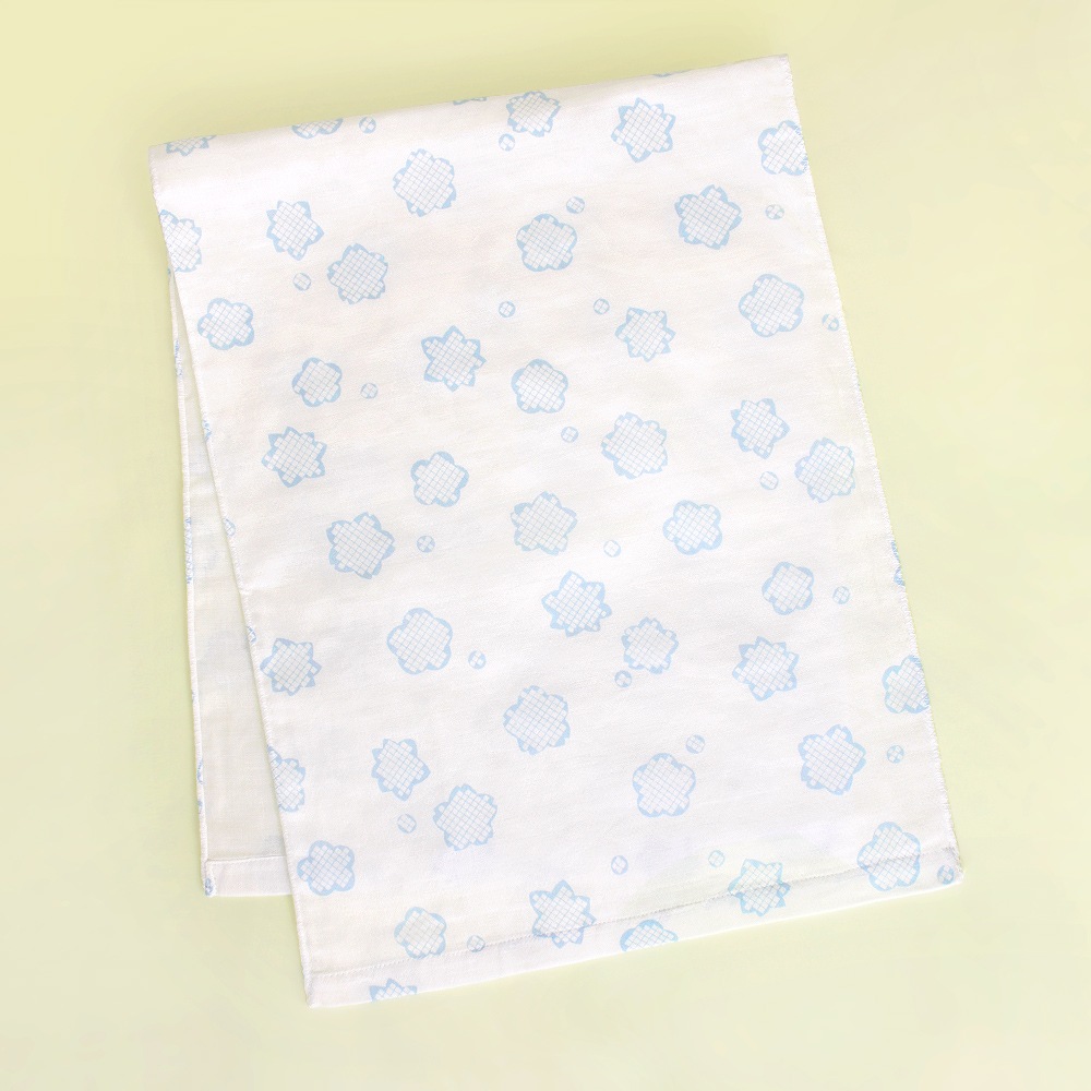 ふんわり柔らかな、ジャガード織りの二重ガーゼを使った「りんりん」柄の手拭い。 夏はタオル代わりに、冬は毛布の衿に、キッチンや洗面所のお手ふき、またお化粧時の衿掛けにも。 スポーツや屋外作業の汗対策に首に巻いてお使いただくと、吸水性と肌ざわりの良さで、市販のタオルは使えなくなるほどです。